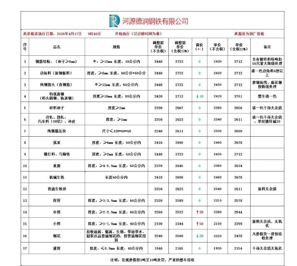 **日珠?;浽XS最新價(jià)漲**:矽鋼片****,沖花料****,破碎料停收,重廢毛料停收。含稅價(jià)。