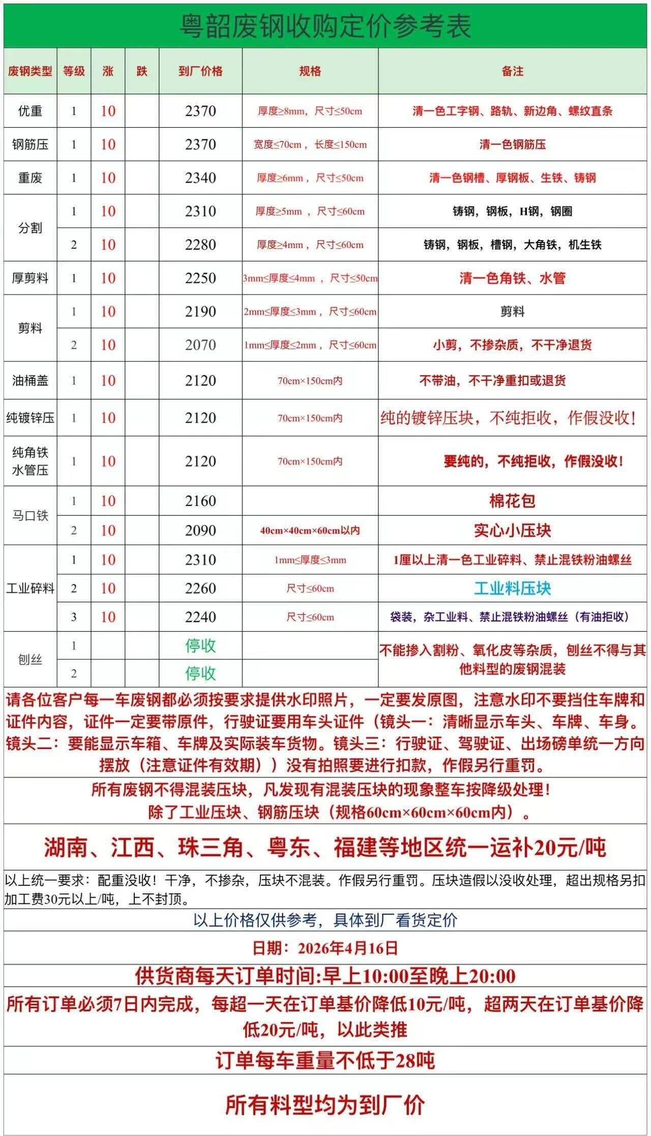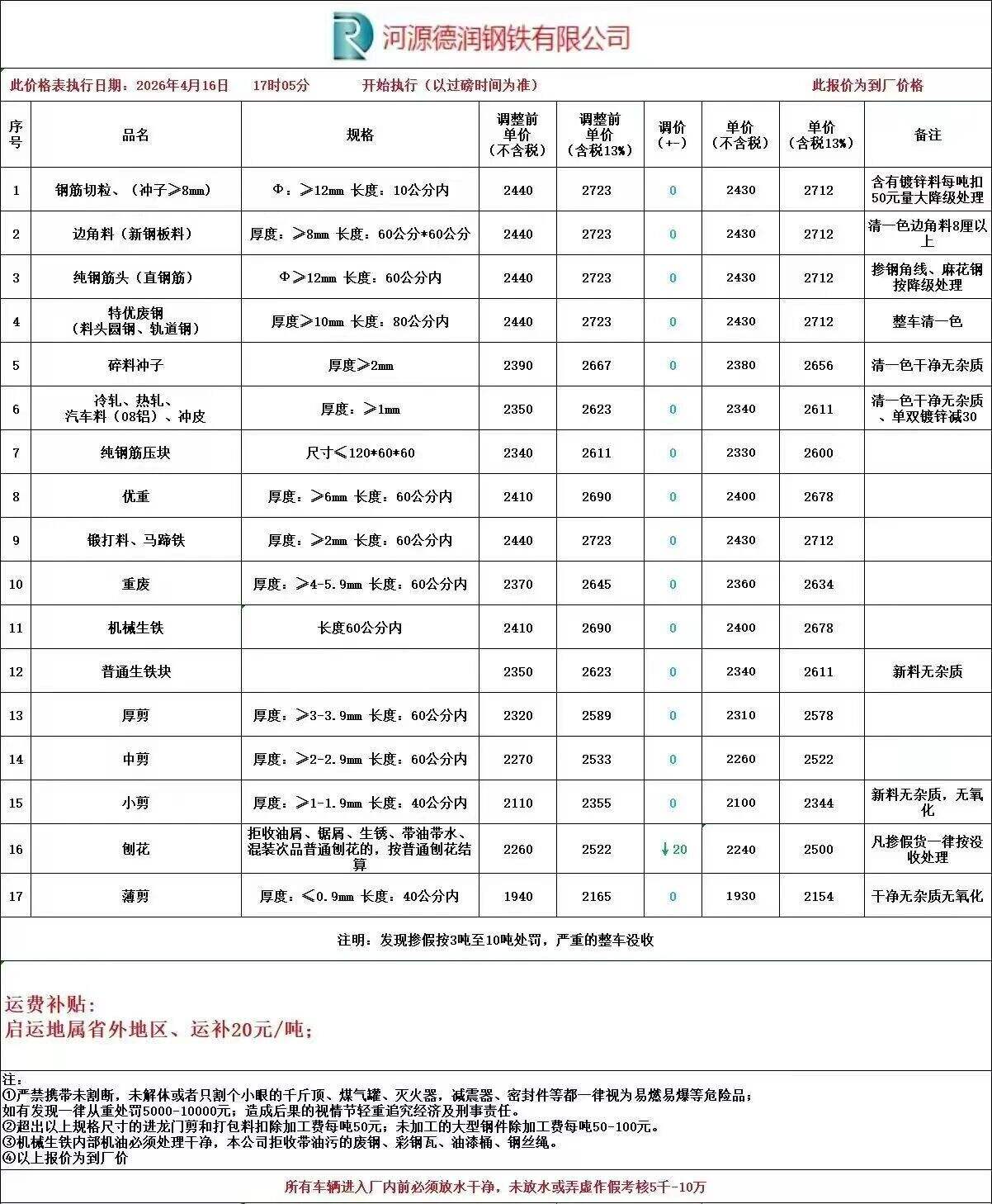 陽(yáng)春自****年*月**日至下次調(diào)價(jià)時(shí)止,各廢鋼品種價(jià)格普漲**元。